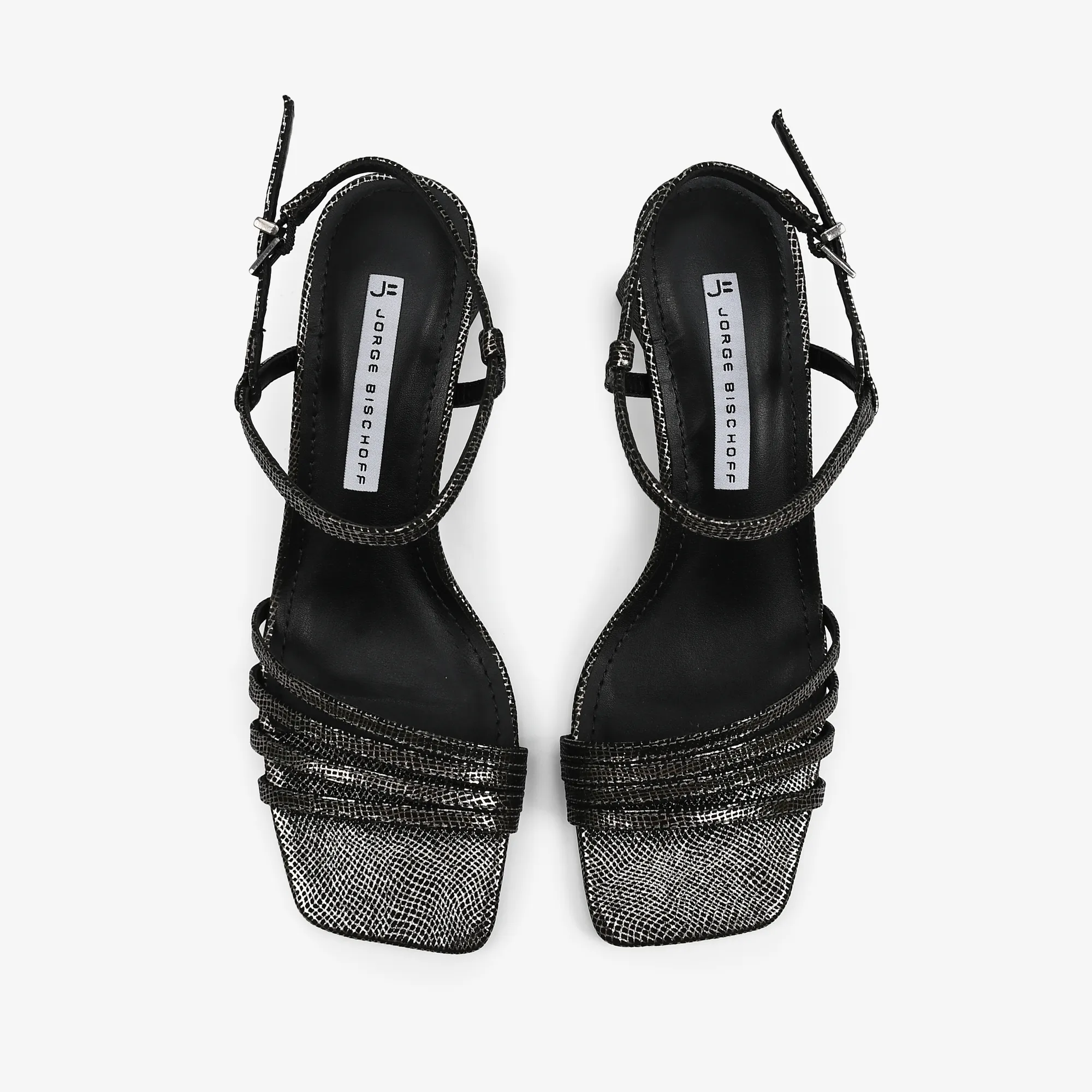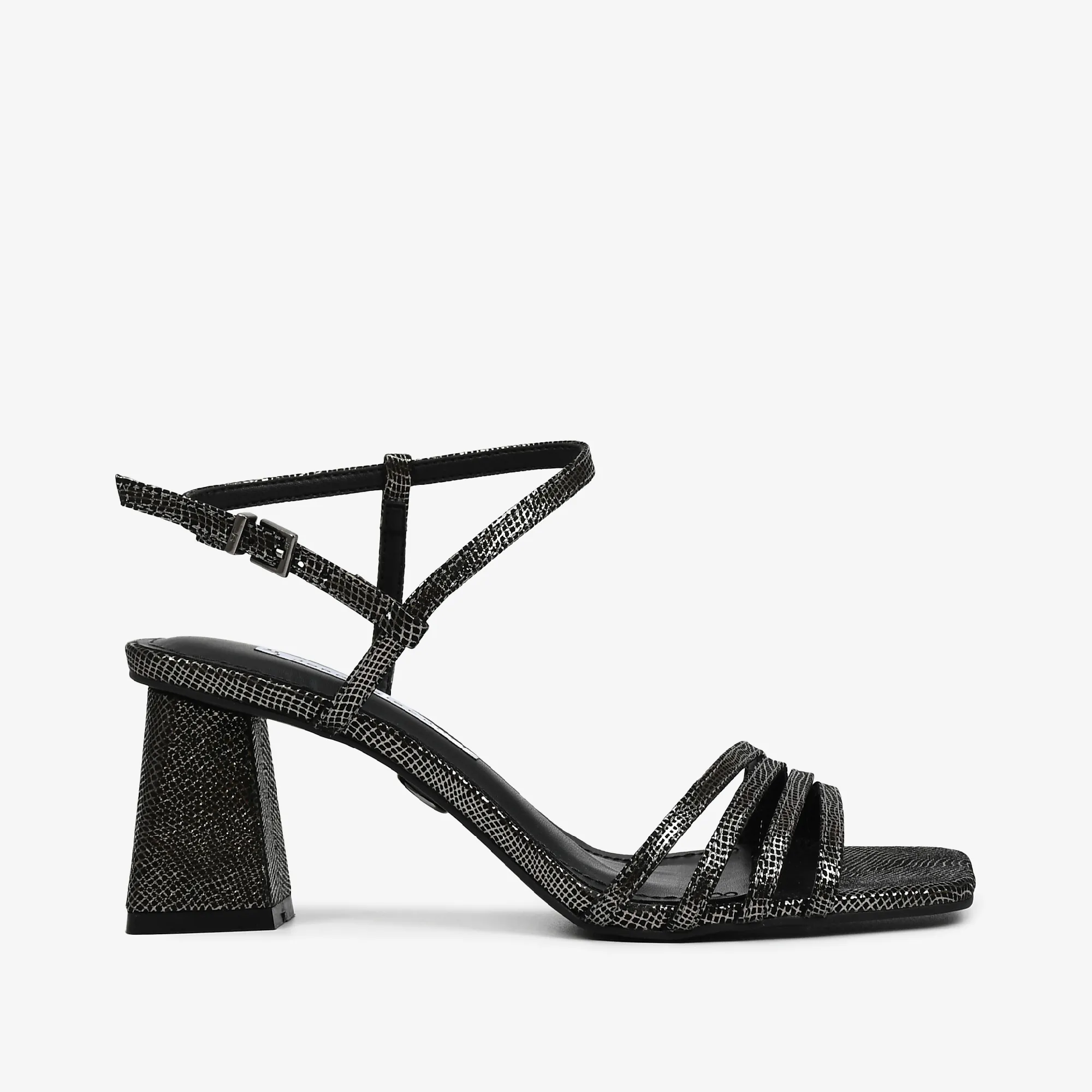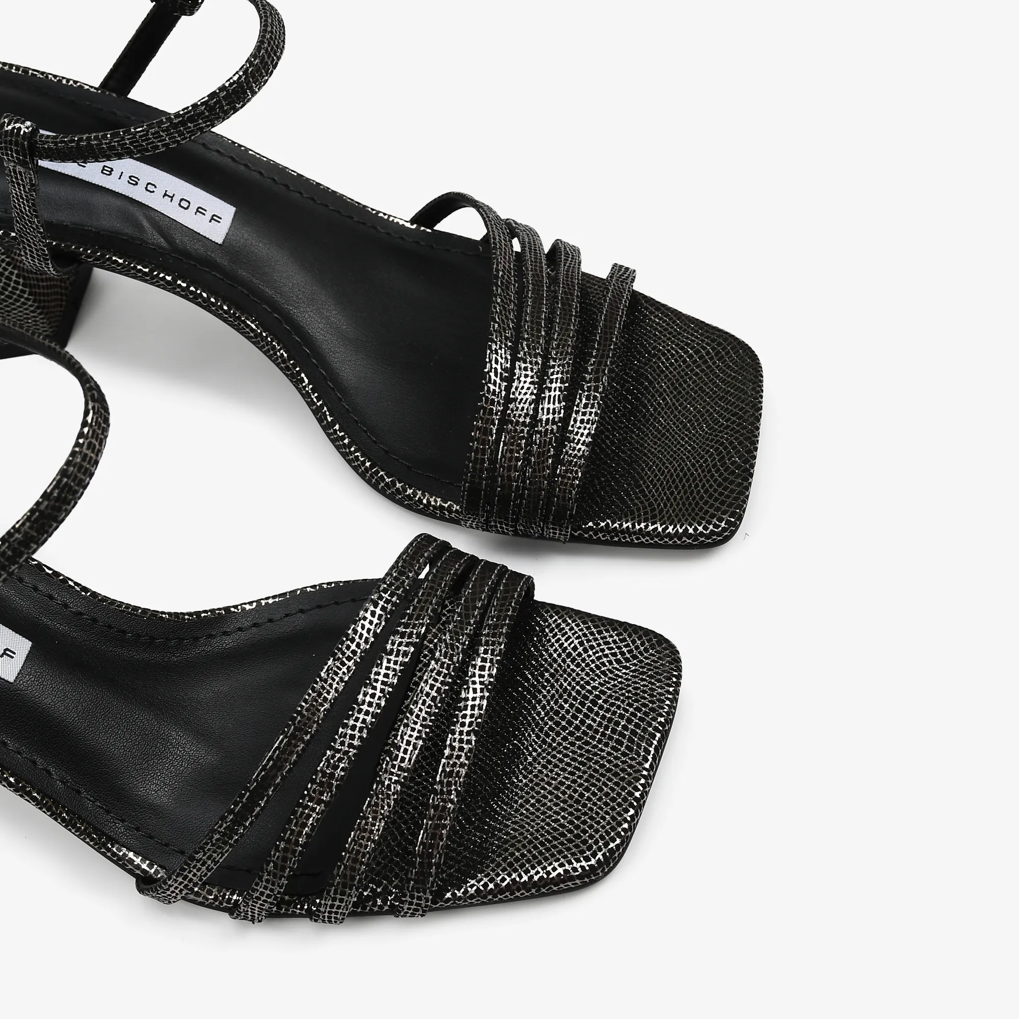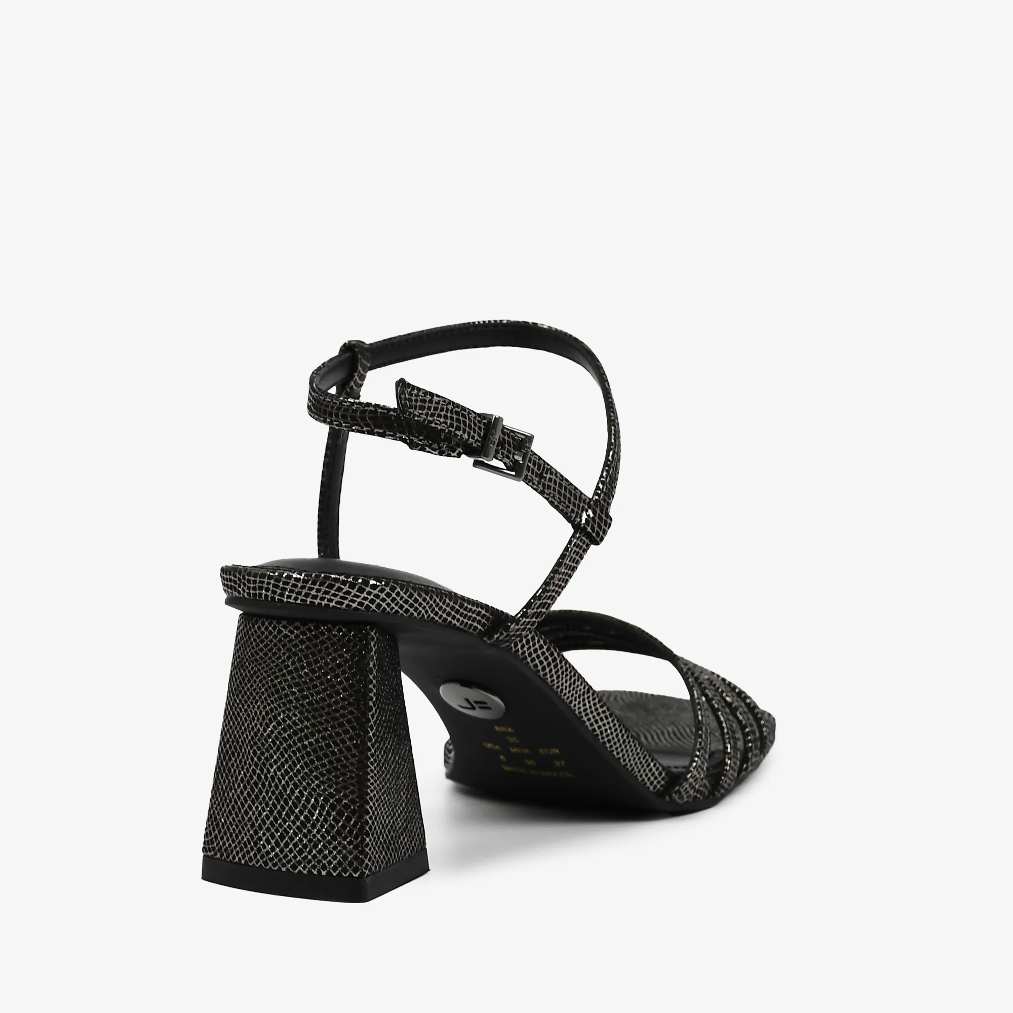 SANDALIA CUERO TELA METAL GRAFITO