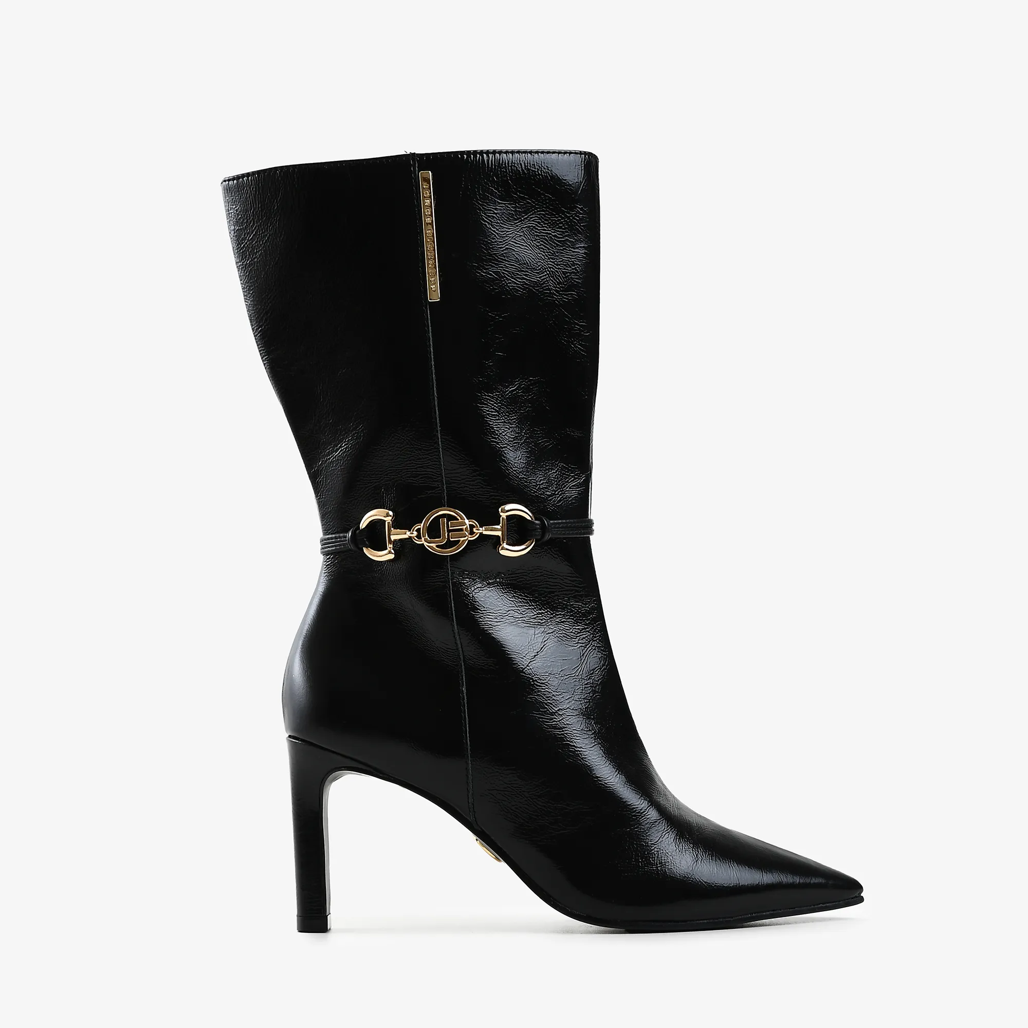 Botín elaborado en cuero crinkle negro de alta calidad, con textura distintiva que aporta carácter y sofisticación.