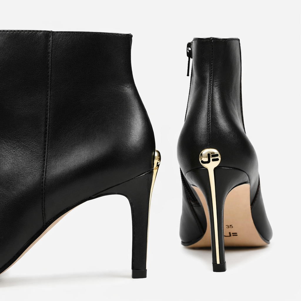 Botín elaborado en cuero negro de alta calidad, con diseño sofisticado y detalle mandala JB que aporta identidad y un estilo distintivo.