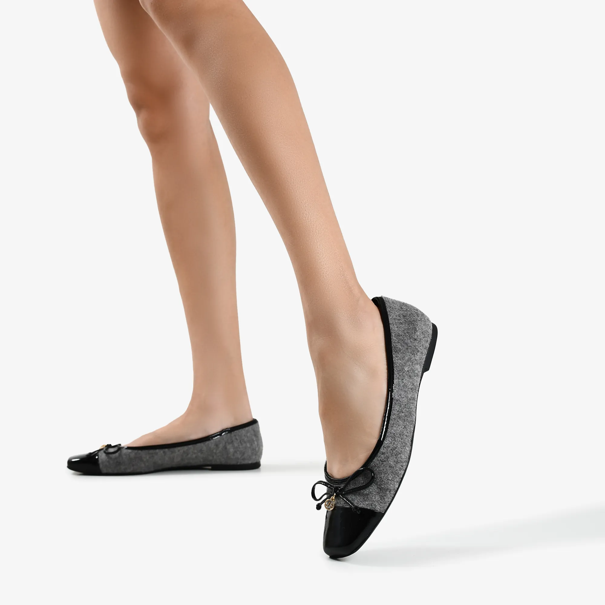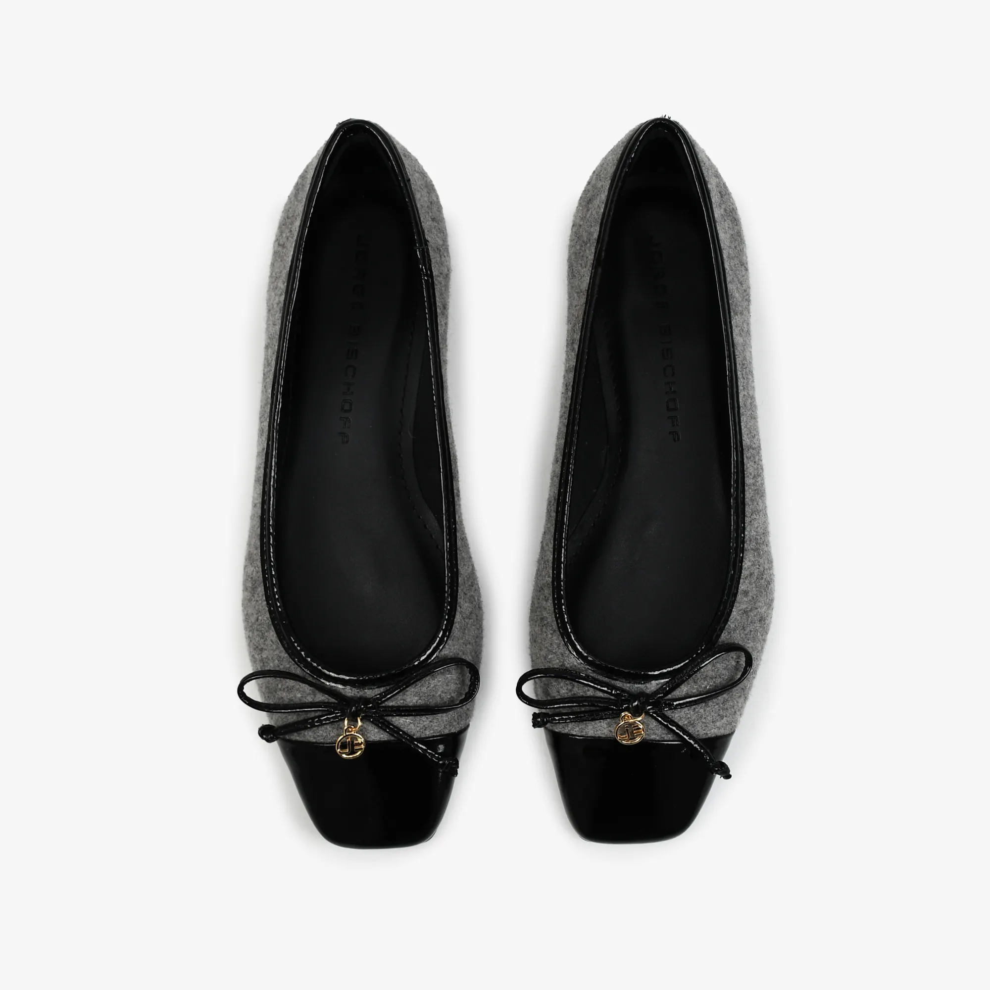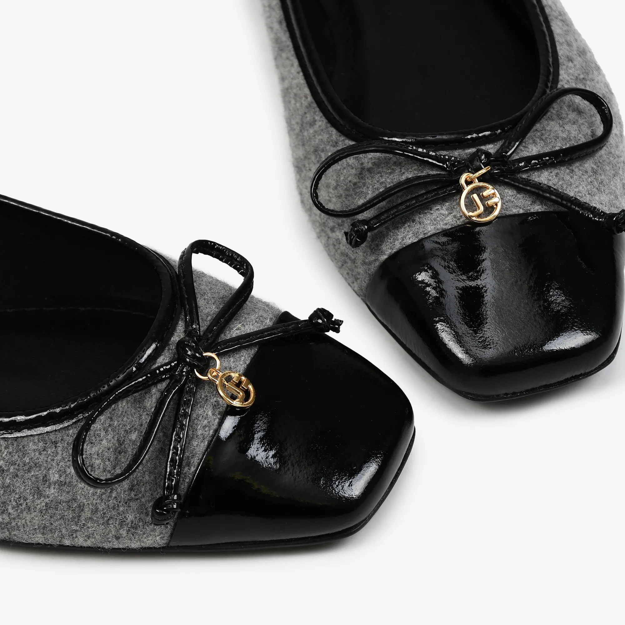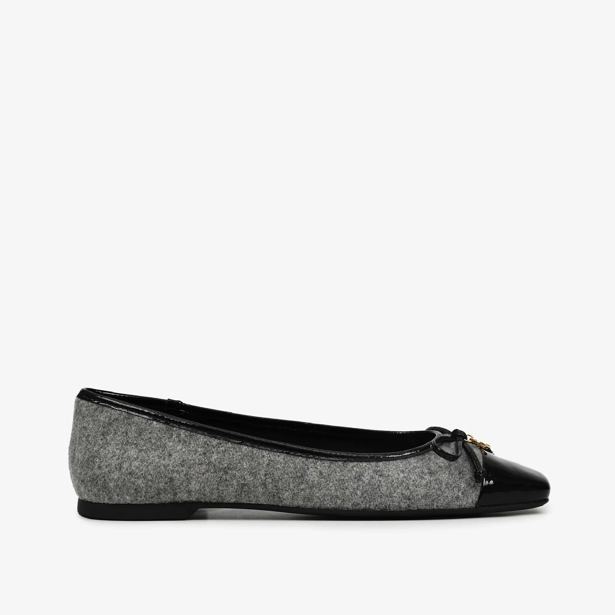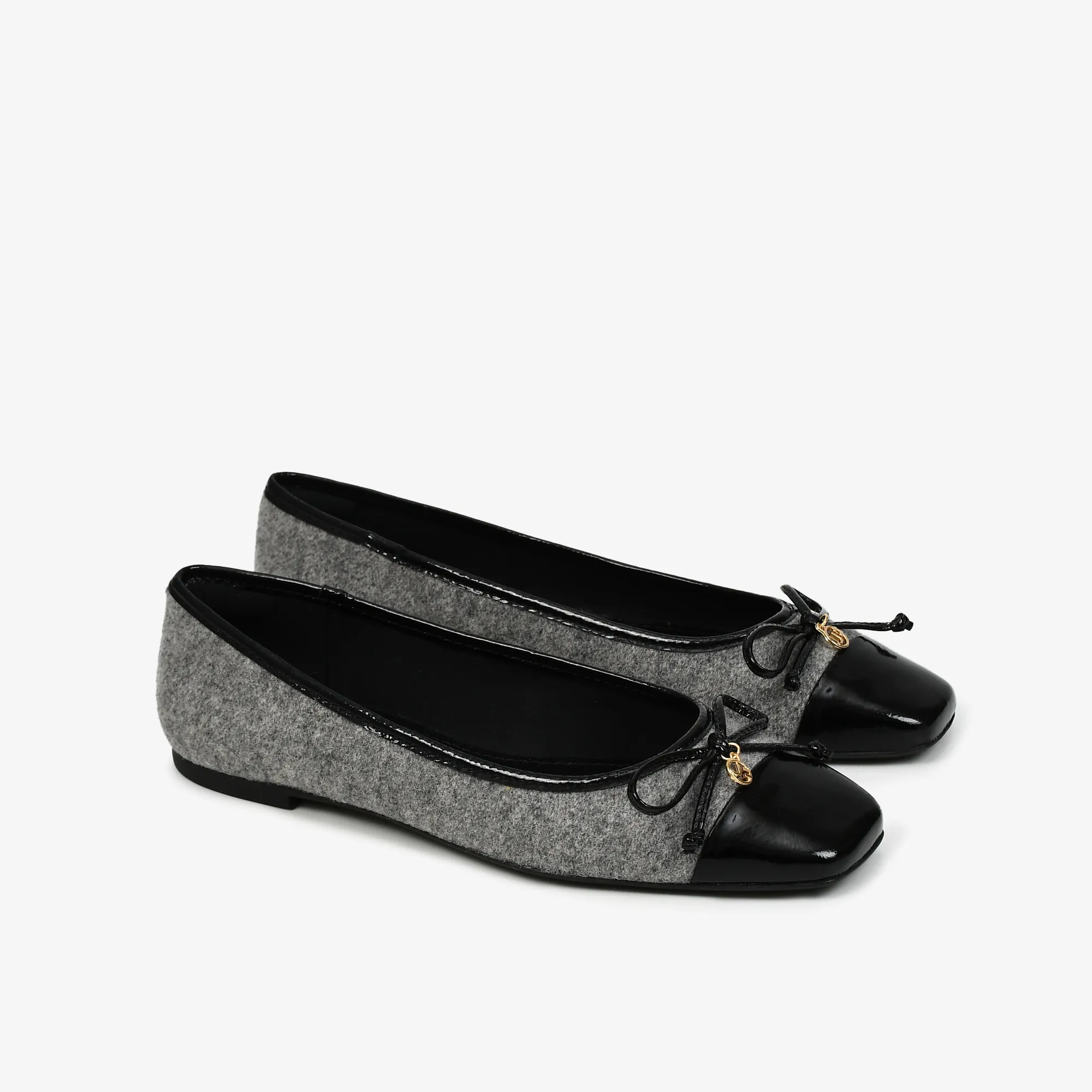 Ballet Flats, elaborado en combinación de tela y cuero de alta calidad en tono gris, con diseño ligero que aporta elegancia y versatilidad.