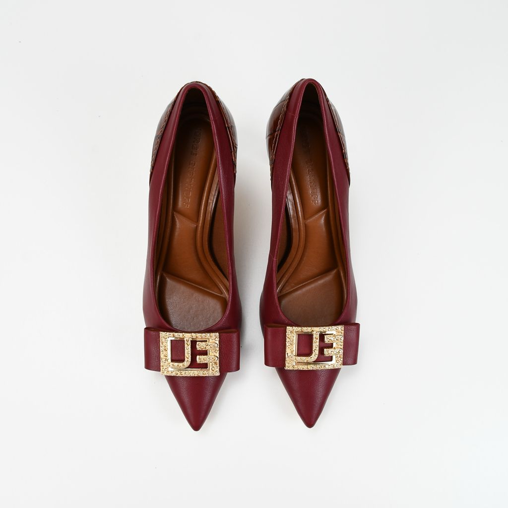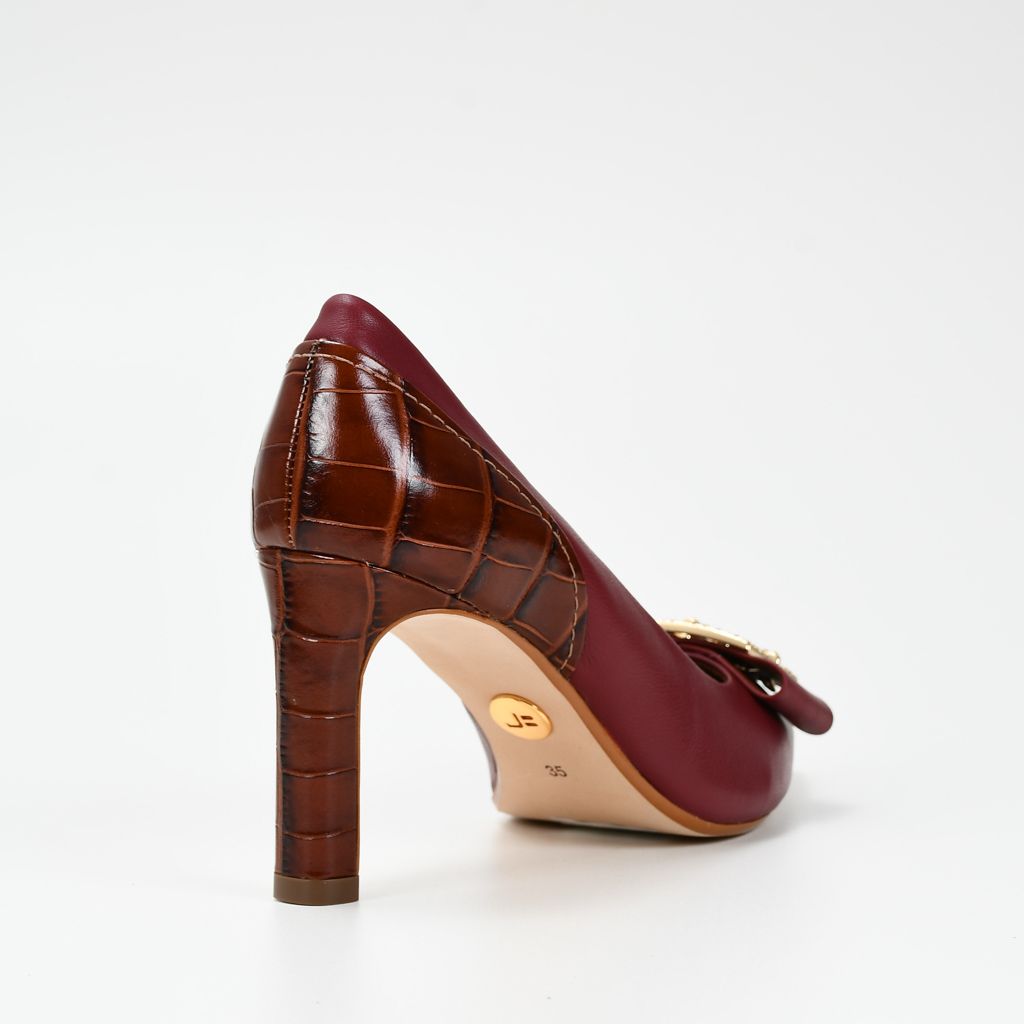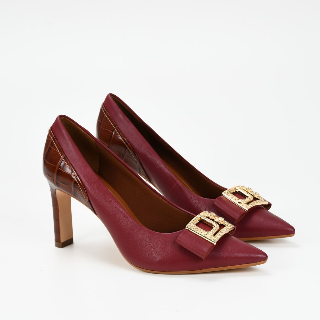 Scarpin elaborado en cuero croco cabernet de alta calidad, con textura sofisticada que aporta elegancia y un estilo distintivo.
