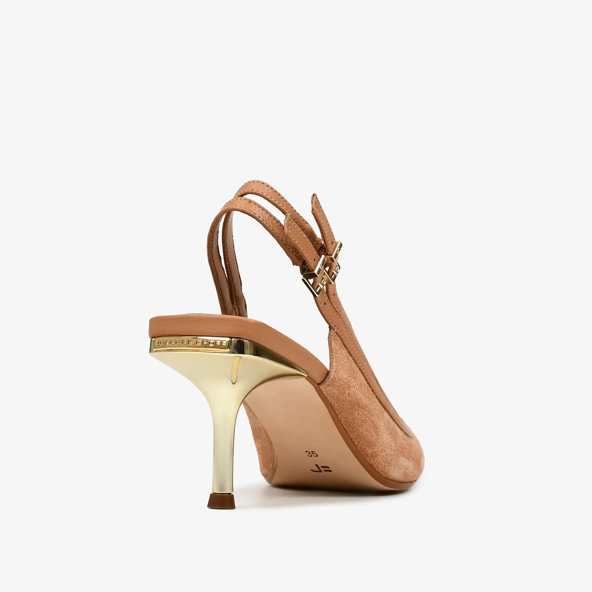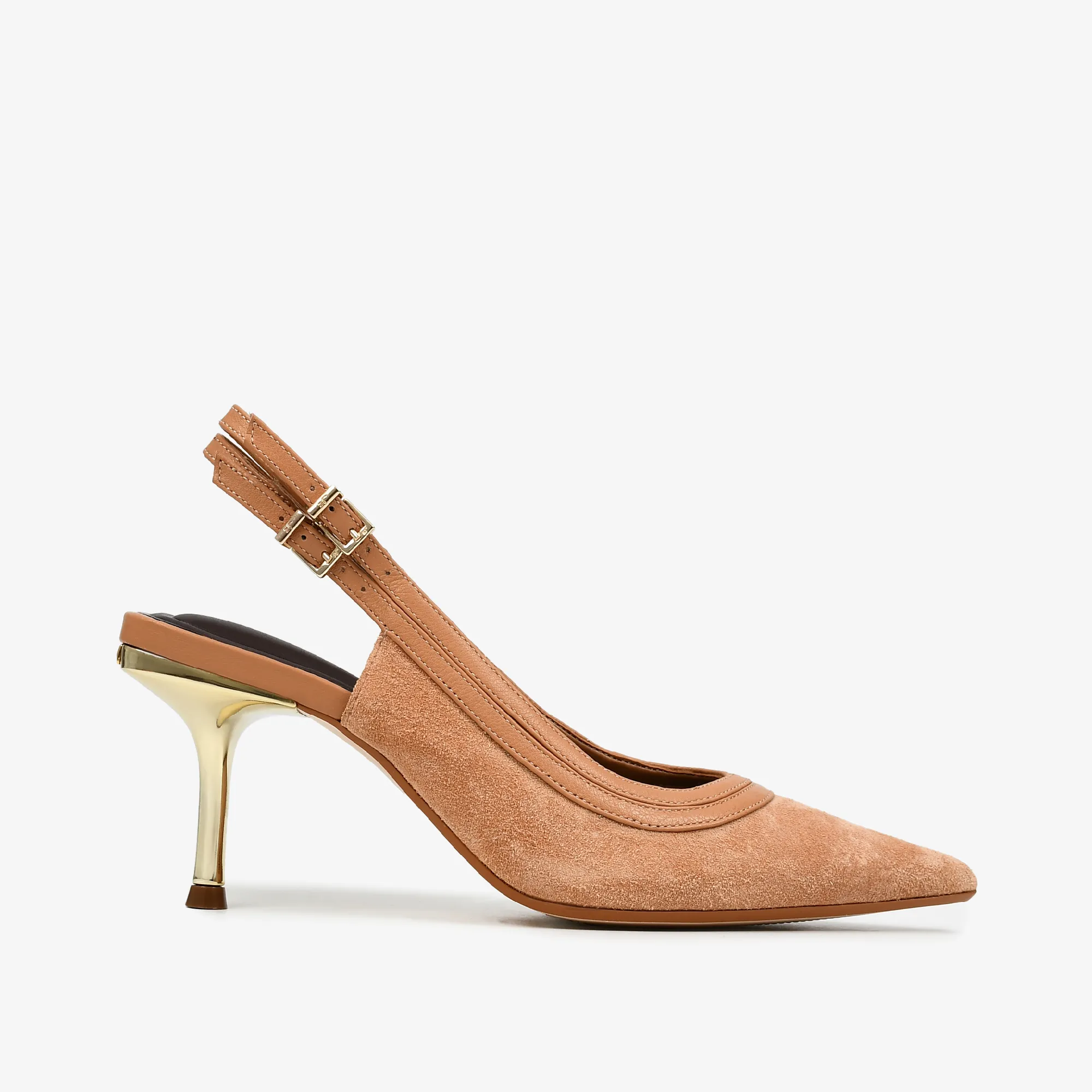 Slingback elaborado en cuero de alta calidad en tono álamo natural, con diseño elegante que aporta frescura y sofisticación.