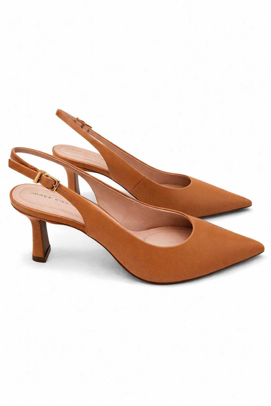 SLINGBACK DE CUERO -TACO EN BARRA ALMENDRA