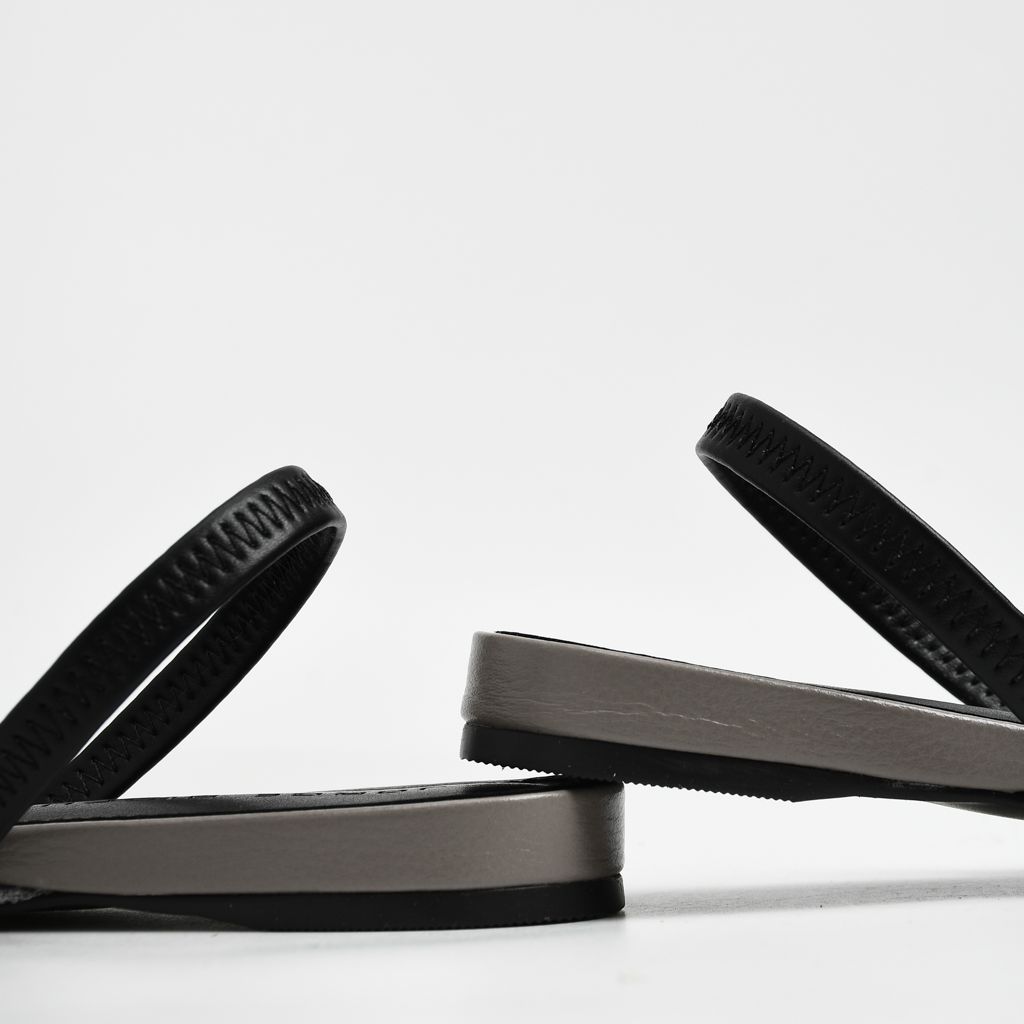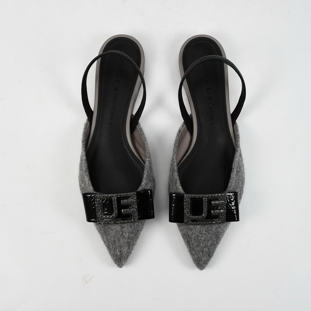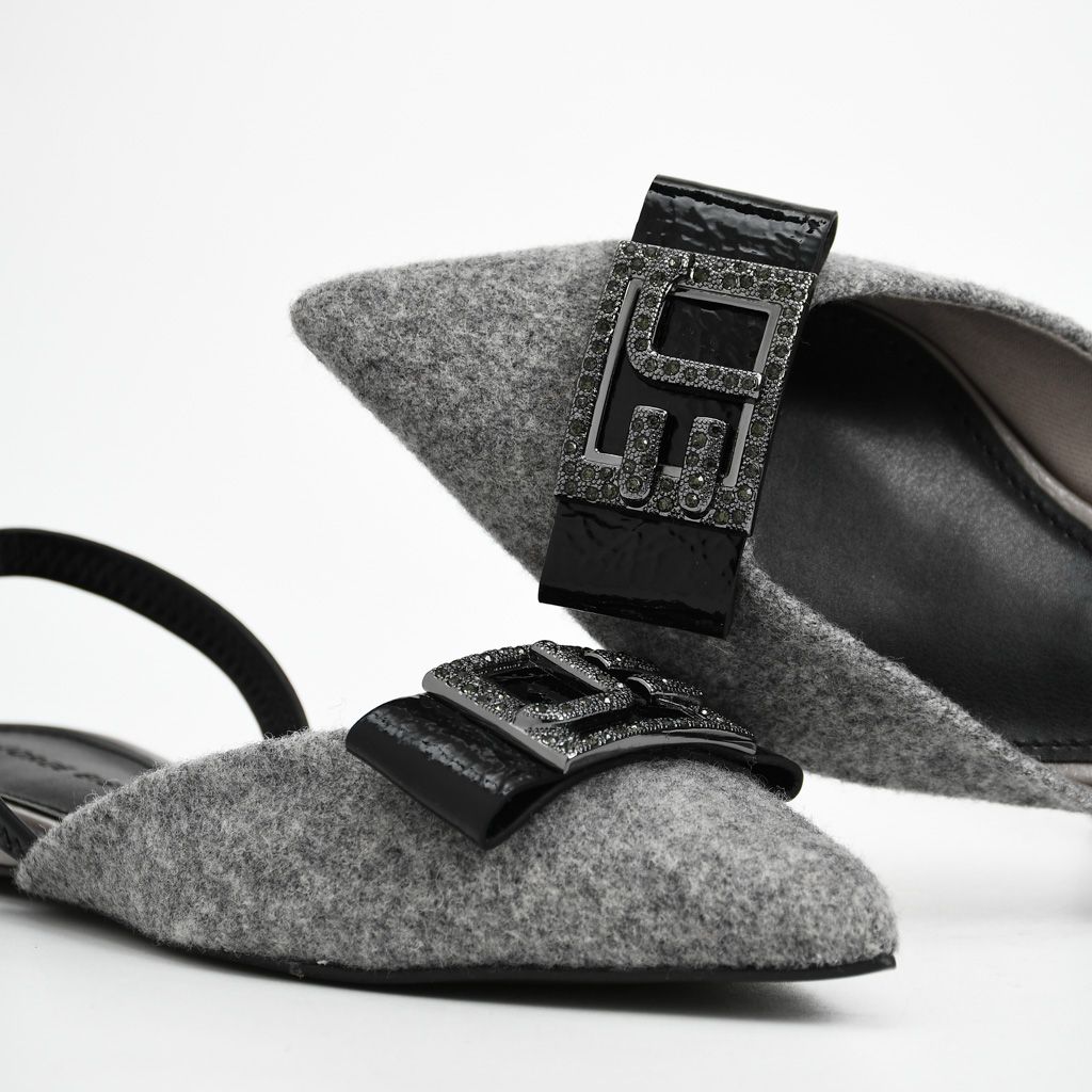 Slingback estilo flats elaborado en combinación de cuero y tela en tono caliza gris, con diseño ligero que aporta elegancia y versatilidad.