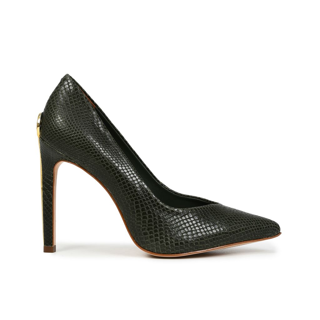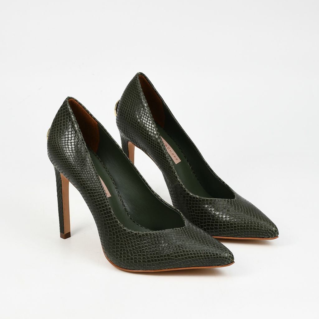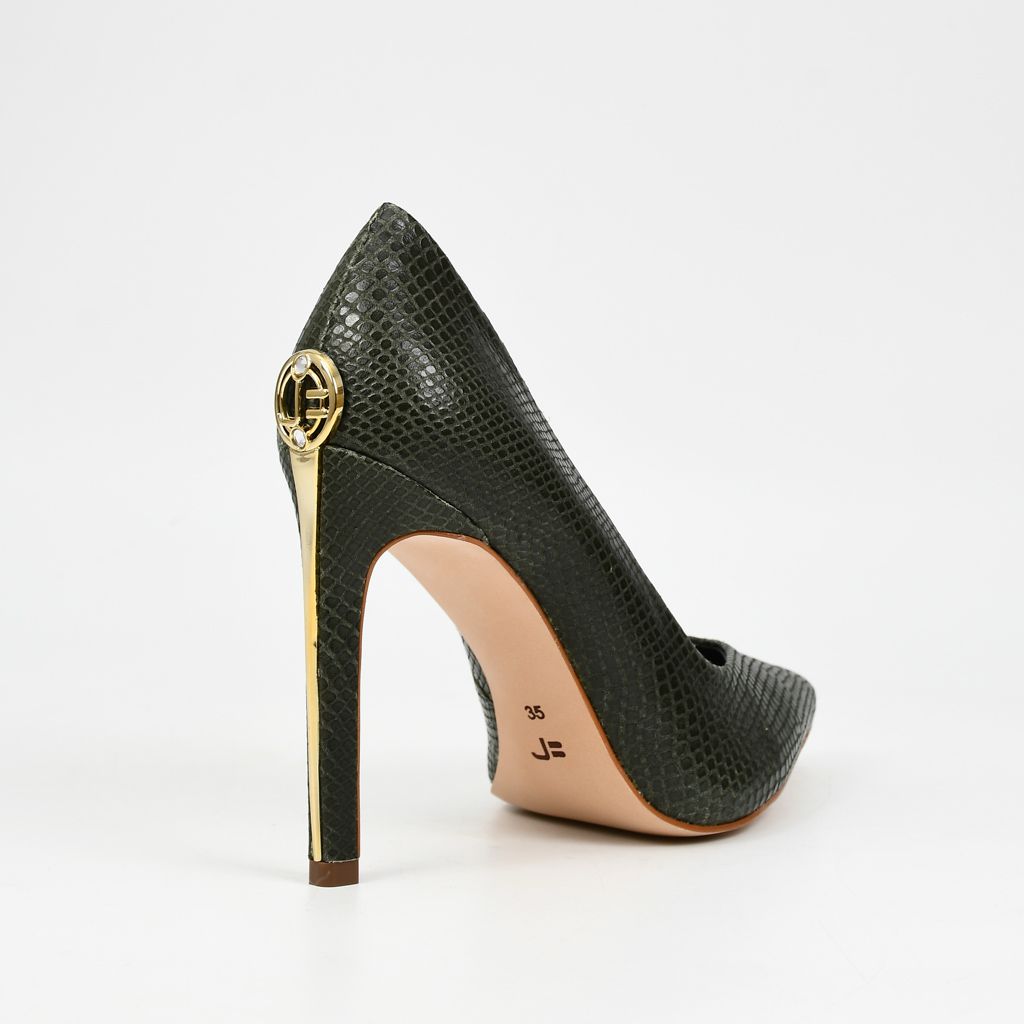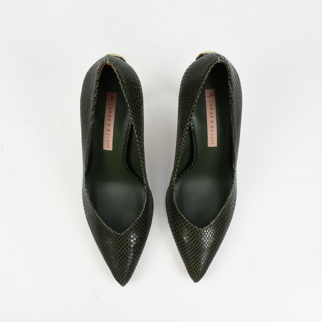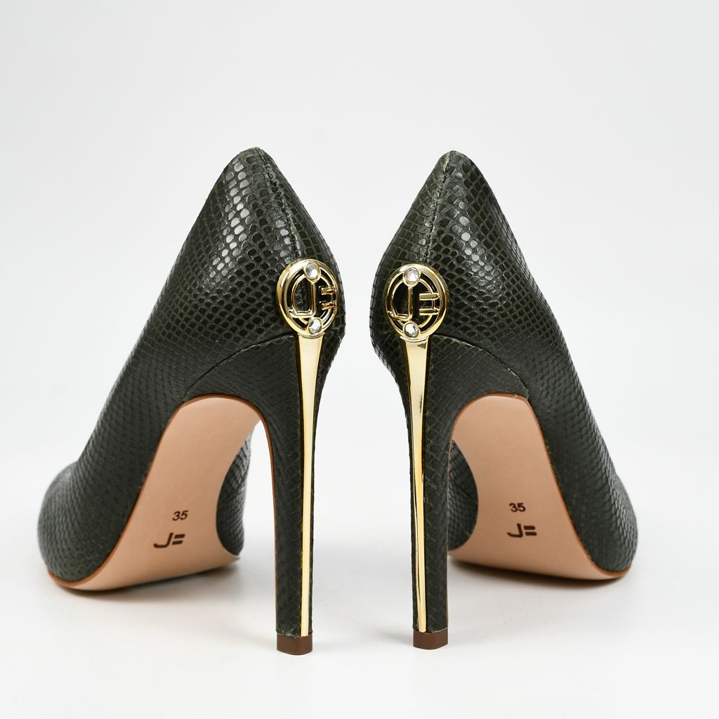 Stilettos elaborados en cuero de alta calidad, con acabado glossy snake y tacón de diseño refinado que aporta elegancia y sofisticación.